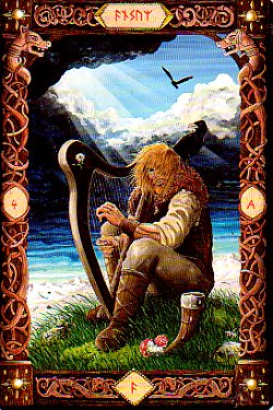 From Runic States by Kevin Steffen - Keywords: Messenger, Inspiration, Spirit Power and Knowledge, Song and Poetry, Communication, Nepture, the number 4. Esoteric Meanings: This rune ANSUR is both the answer of your prayers, and a gift of knowledge from Odin, yet it could be a trick of Loki. The Germanic trives were wary of all gifts from the Gods, because there was often a price to pay with them. The Gods normally did not get involved in the affairs of men, unless they could frustrate the schemes of the giants by doing so. With Odin's precognitive skills, the Gods helped men in order to help themselves at Ragnarok. To this end the Valkyrie searched the battlefields for the bravest and best fighters, to carry them to Valhalla to await Ragnarok. Another practice of Odin's was to set tests for heroes and other candidates for Valhalla. When you deal with Odin or shamanism, there is a great potential for power, and a certainty that you will be placed in situations which will force you to grow up, develop yourself, and to move forward. After all, the entire motivation for Odin is to protect Asgaard and to prepare for Ragnarok. If you are going to gain the attention of Odin, you must be prepared to be thrown into situations which will train, challenge and test you. When you work with shamanism and the runes together you will definitely draw the attention of Odin. He is interested in heroes, not wimps. If you can not develop the moral character, skills and courage he requires, there is little concern as to whether you pass or fail the test. The test will always be scrupulously fair, but very difficult, and failures can always be dangerous. Valhalla is not for the faint of heart. Today this rune, ANSUR, is communication in all of its myriad of...forms. When reversed, beware Loki's lies, yet when upright, it may hold the answer to your prayers as a gift from Odin. Astrologically, ANSUR, relates to the planet Neptune, the planet of the arts and spiritual matters. ANSUR is grouped with Raidho and Tiwar in matters of the spirit. Raidho portrays spiritual development (journey), Tiwar (Tyr) is the discipline of the spirit, while ANSUR is the knowledge and powers of the spirit matters. |