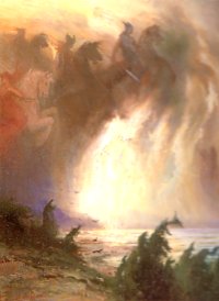 Even with a mighty army of heroic warriors, Odin - through his knowledge of the future - knew the outcome of Ragnarok: The battle would be fierce, and the gods would end up dying, but they would take the forces of evil with them, thus saving humanity. Odin's only consolation was the foreknowledge that his resurrected son Balder would be worshipped in his stead in a new age and new land which would rise from the sea. |